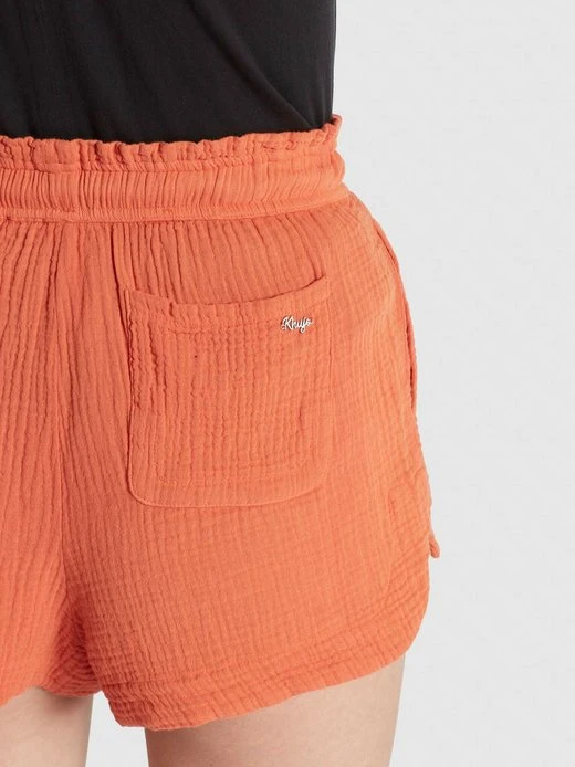 Mit der kurzen khujo Hose MANAIA werden die Beine gekonnt in Szene gesetzt. Diese leichte Shorts ist im Regular Fit mit Mid Waist geschnitten und aus einem weichen Baumwollstoff mit Crinkle-Effekt gefertigt. Der elastische Bund mit Kordelzug, seitliche Eingrifftaschen, eine aufgesetzte Gesäßtasche und seitliche Schlitze im Hosenbein komplettieren das lässige Design dieser Hotpants.