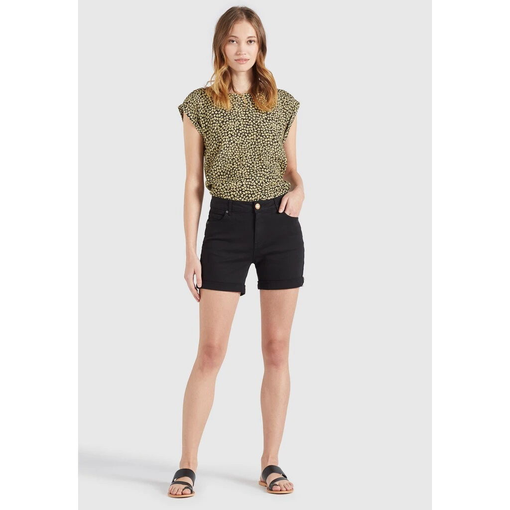 Im Slim Fit mit Mid Waist geschnitten und aus einem festen Baumwollstoff gefertigt begeistert die kurze khujo Hose RIVEN. Diese 5-Pocket Shorts schließt mit einer Kombination aus Metallreißverschluss und Knopf und ist zudem mit Gürtelschlaufen am Bund ausgestattet. Der umgeschlagene Hosensaum betont bei dieser einfarbigen Hotpants den lässigen Charakter.AMAZON Artikelbezeichnung: khujo Damen Hose RIVEN Shorts einfarbig Hotpants 5-Pocket-Stil GürtelschlaufenBesondere Merkmale: im 5-Pocket-Stil mit GürtelschlaufenHerkunftsland: ChinaLaRedoute Titel Deutsch: Hose im 5-Pocket-Stil mit Gürtelschlaufen RIVENMaterialzusammensetzung: Obermaterial: 98% Baumwolle, 2% ElasthanModellname: RIVENZalandoHosentaschen: SeitentaschenVerschlussart: ReißverschlussBeininnenlänge in cm: 12 cm bei Größe W27/L32Passform: NormalUnterteil-Länge: Shorts/Midirockwaist: Mid Waistbesonderemerkmale: im 5-Pocket-Stil mit GürtelschlaufenDetail: SonstigeAmazon Stil: ChinoMaterialzusammensetzung_Otto: Obermaterial: 98% Baumwolle, 2% ElasthanNichttextile Teile tierischen Ursprungs: JaPflegehinweis: Maschinenwäsche bei 30°C, nicht Trockner geeignetAnzahl Teile: 1LaRedoute Titel: Pantalon dans le style 5 poches avec passants de ceinture RIVENsportart: ohneSTYLE_KEY: 1078PN211Geschlecht: Damen